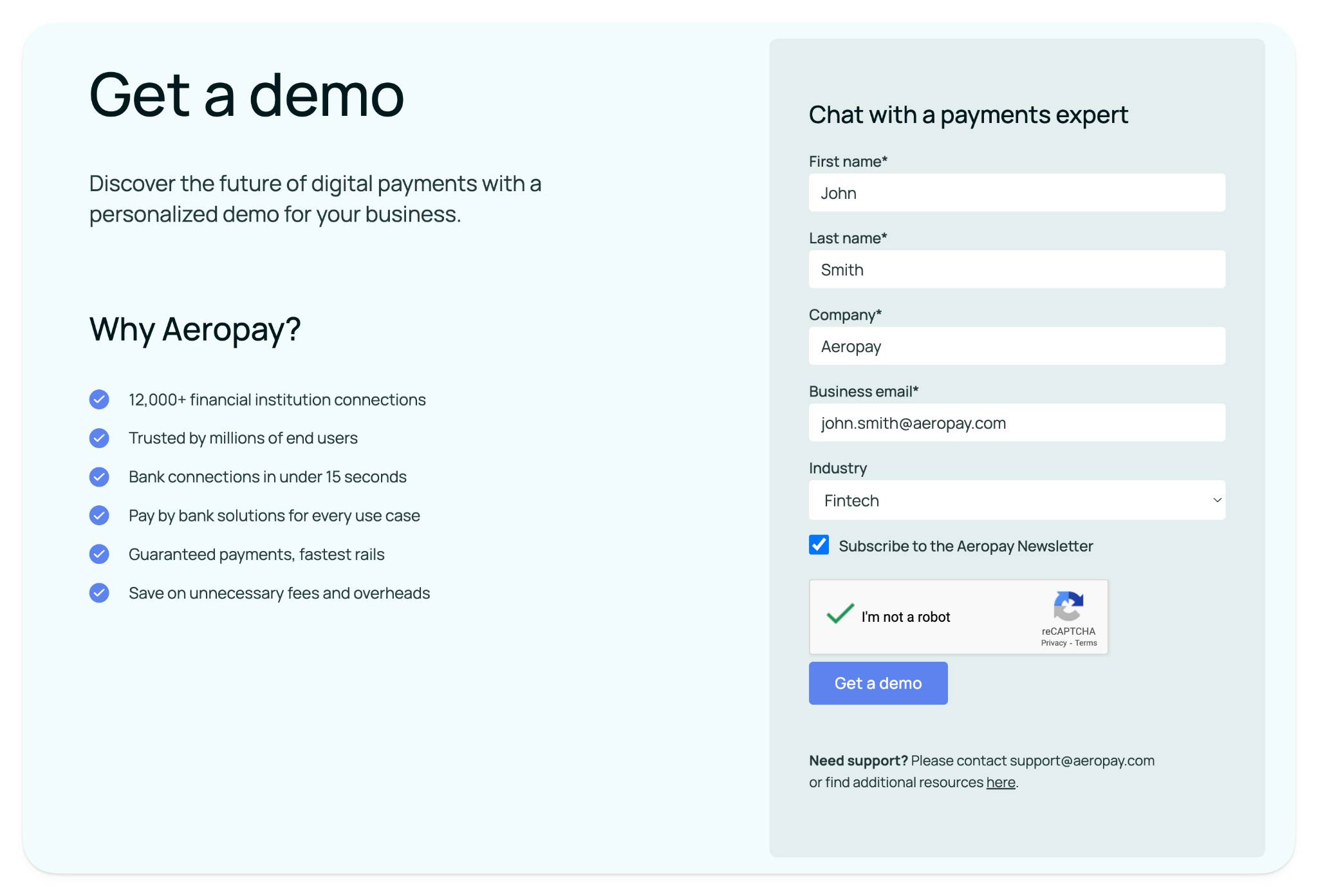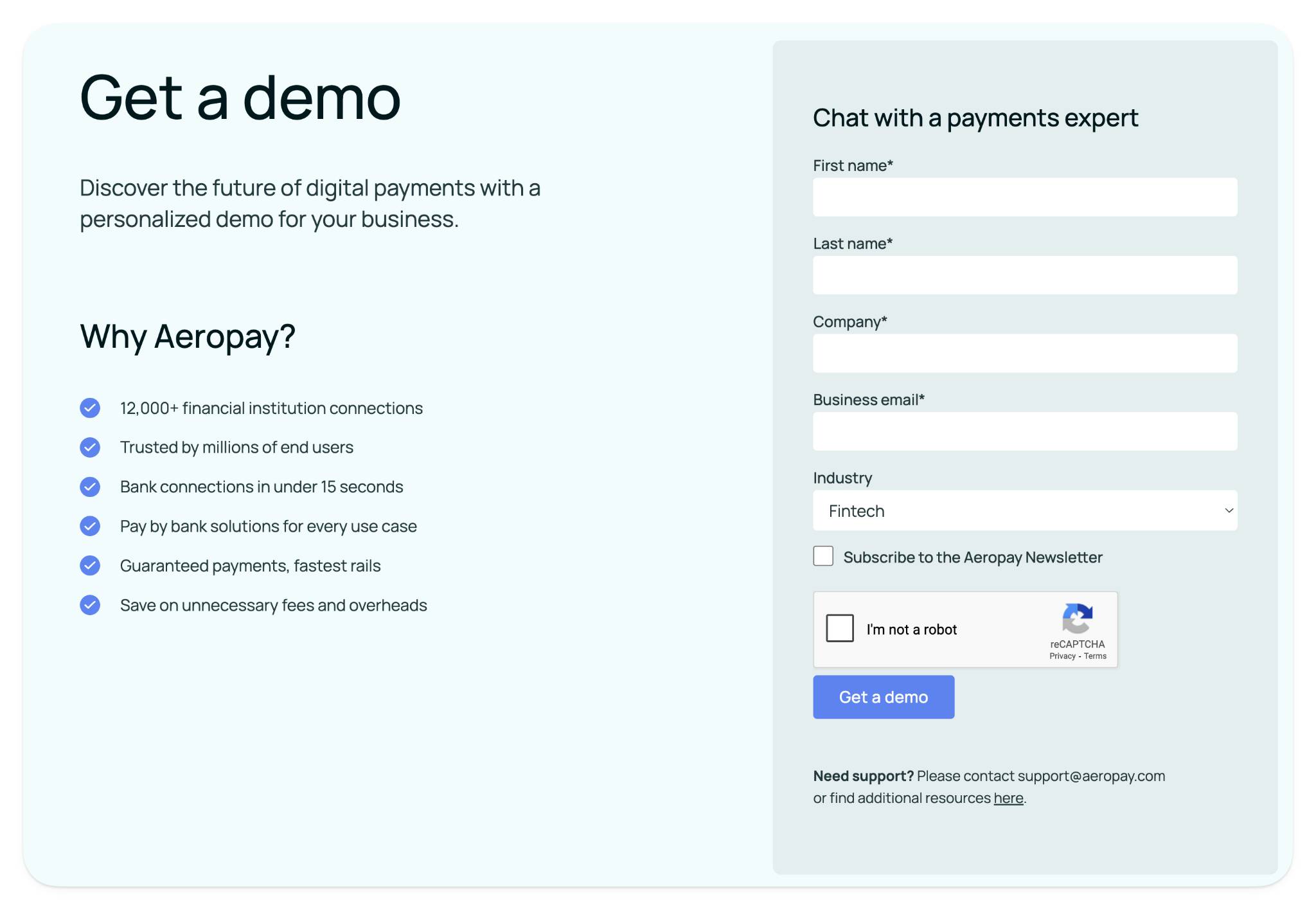 In this article, we will cover how to send Aeropay a request to sign up and get a demo.
