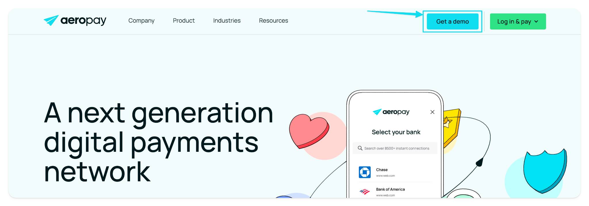 On Aeropay's website there are a few ways to sign up and get a demo. The easiest way is by clicking the get a demo button located at the top right of our site.